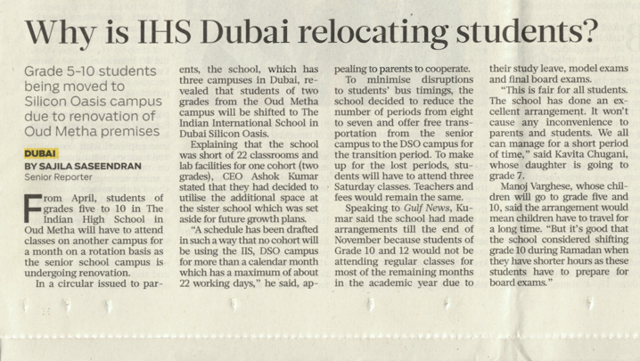 Just so we validate, let’s take this example : Why is IHS Dubai relocating students?
