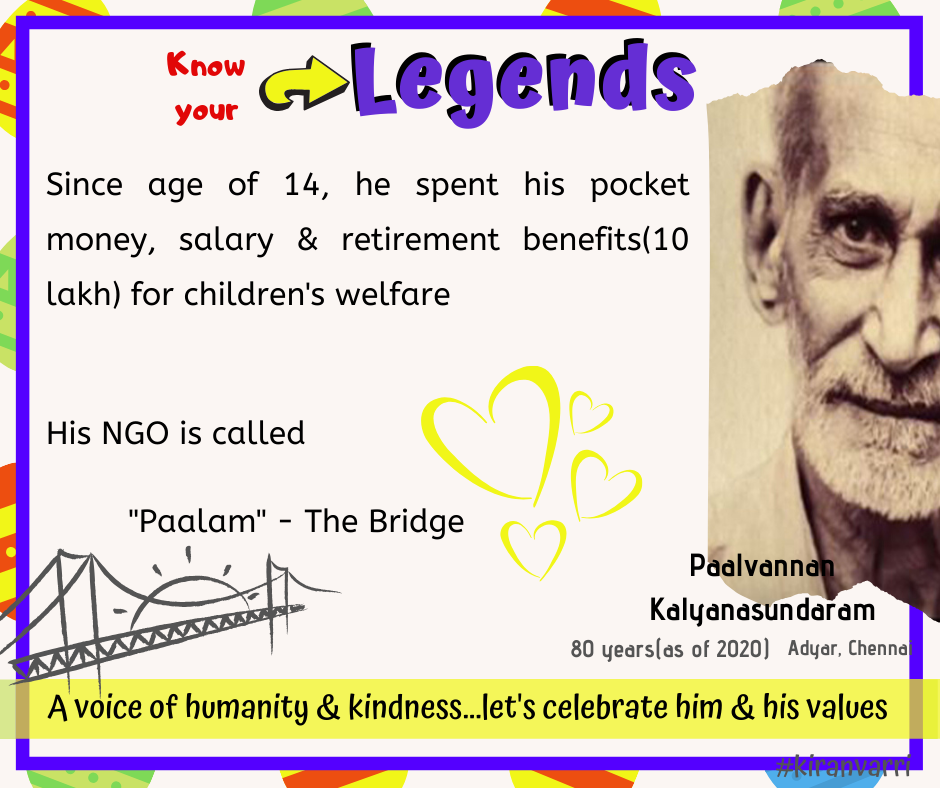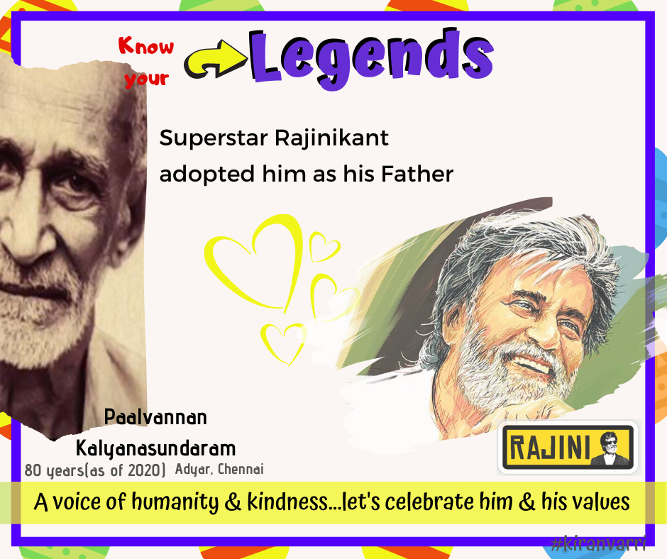 His NGO is aptly called “Paalam” – The Bridge ( He helps in finding ways to help as many… ) >> 8️⃣0️⃣ year young & going strong >> was honored by the likes of Superstar ????Rajinikanth & ????MS Subbulakshmi. He was indeed adopted by SperStar Rajanikanth.